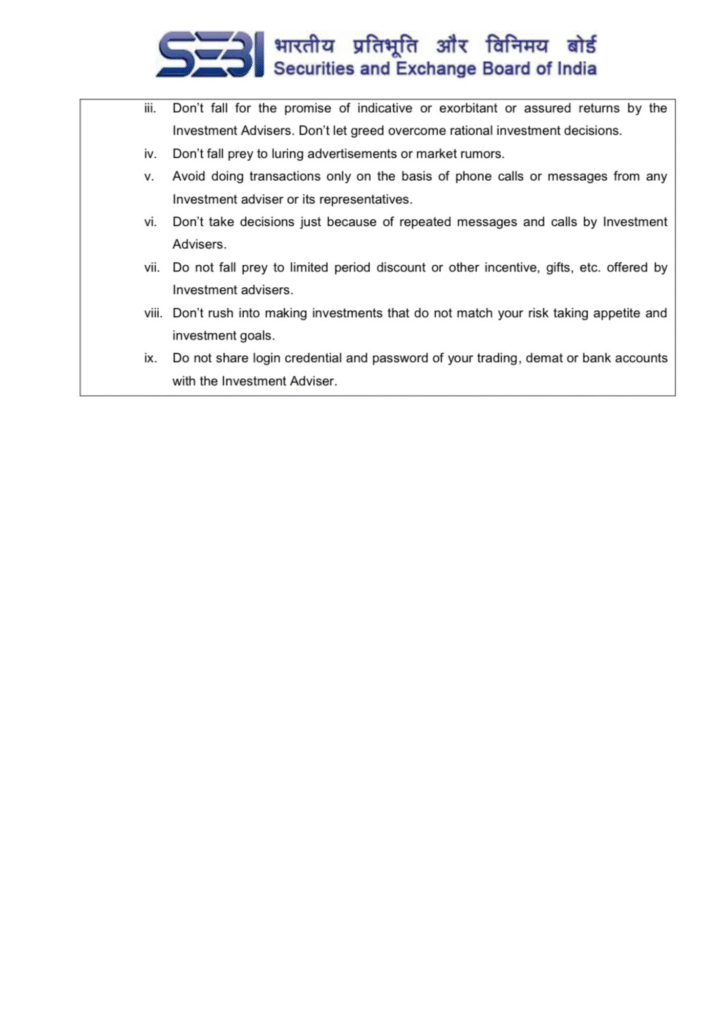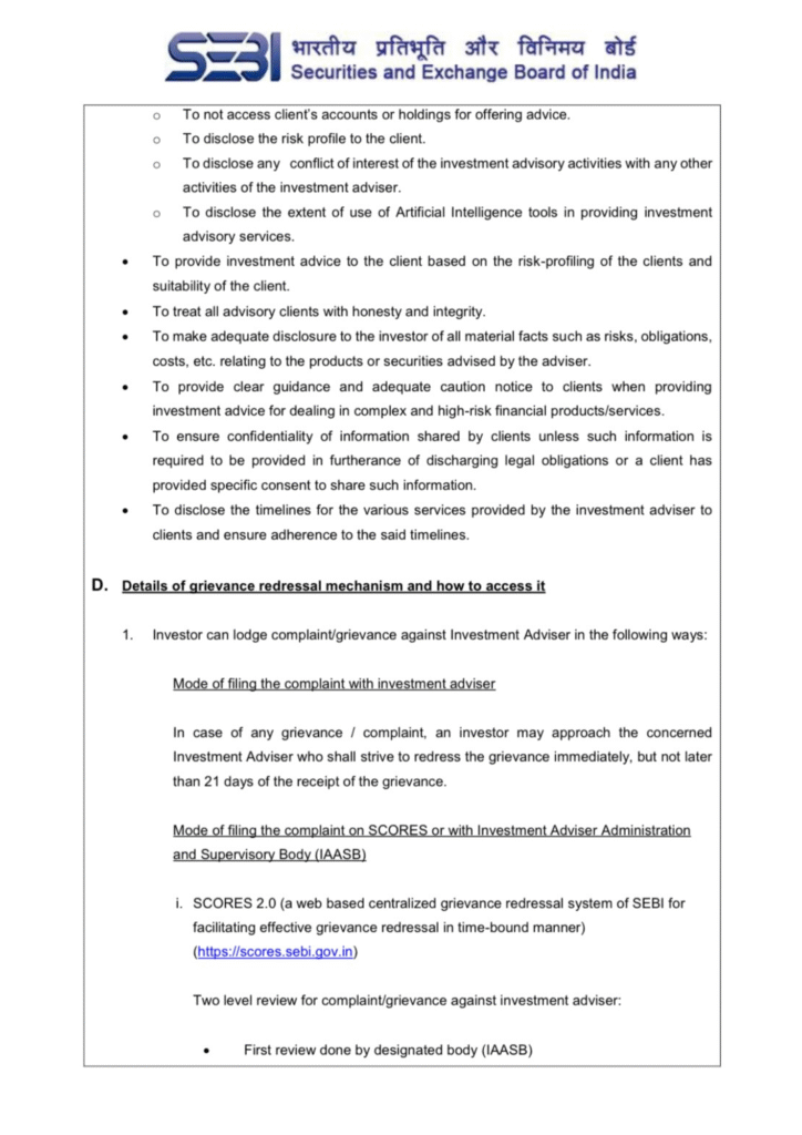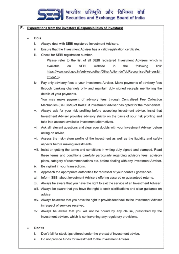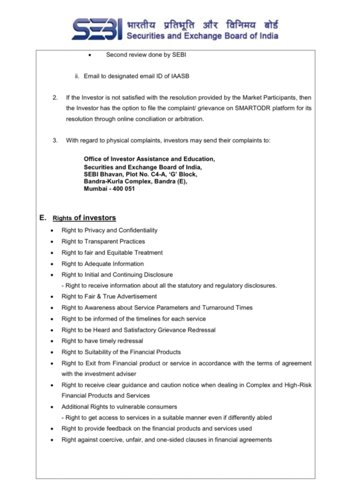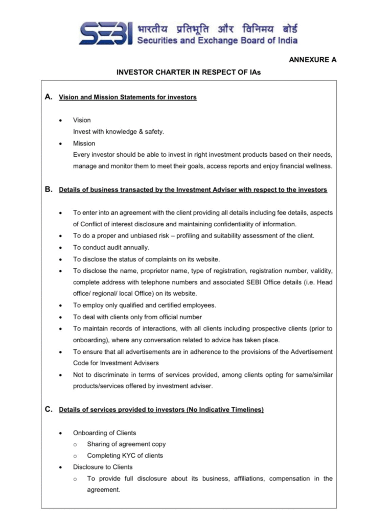 SEBI Investor Charter To facilitate investor awareness, SEBI has created an ‘Investor Charter’ pertaining to Investment Advisers, displayed below for your reference. Alfama Investment & Advisory are a SEBI-registered Investment Adviser with Reg no. INA000017754.